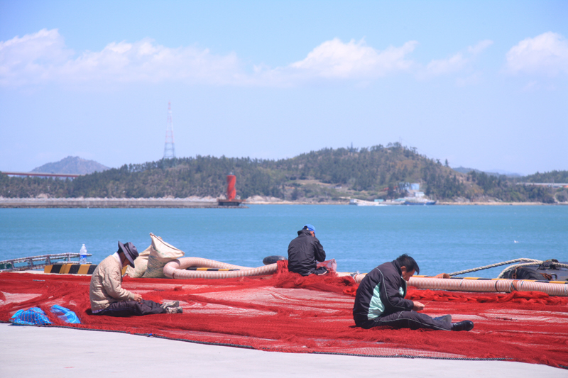 • 그물 손질하는 어민들...